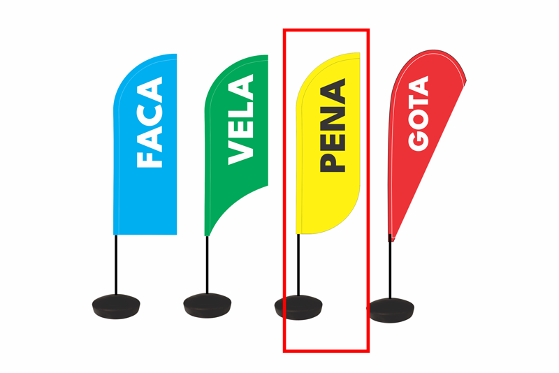 O Wind Banner Modelo Pena de passaro possui um formato que remete à asa de uma ave, sendo produzido em Tecido Active (Microfibra), um material amplamente utilizado na fabricação de roupas e materiais de divulgação. Sua durabilidade e resistência a variações de temperatura e à água tornam o Wind Banner ideal para eventos ao ar livre e campanhas promocionais. A estrutura inclui uma haste em fibra de vidro de 3 metros e uma base opcional de plástico ou concreto, garantindo estabilidade em qualquer ambiente externo.